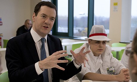 George Osborne talking to staff at a